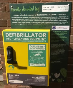 Since P&DCFRs were established over 10 years ago, we have helped and encouraged the setting up of 24/7 public accessible heart defibrillators (AEDs) within Penkridge (15) and the neighbouring parishes (14) we also respond to.